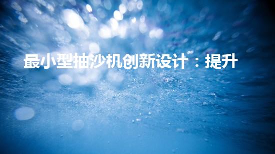 最小型抽沙機創新設計:提升效率的抽沙設備如何改變產業格局?